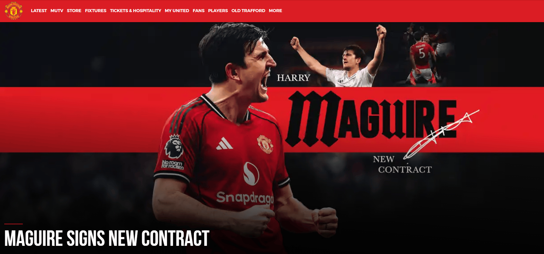 官方:曼联与马奎尔续约至2027年夏 附加一年续约选项